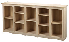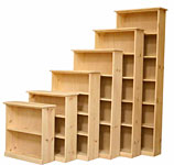 We offer in-stock bookcases as well as custom made. In-stock sizes ranging in widths from 24 to 48 " and heights from 30" to 96". Ponderosa Pine Bookcases are all 10" deep; 18", 24", 30", 36" or 42" wide; 30", 36", 48", 60", 72", or 84" tall. |