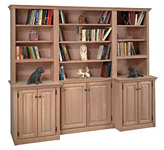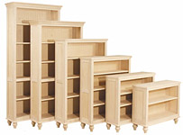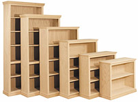 We have many stock sizes of bookcases to work from: Widths of 18" to 60" (by 6" increments), heights of 24" to 96" (by 6" increments), with depths of 10", 12", 16", 18", 20" and 24". We also offer custom sizing if you need it, at an affordable price. We can offer you a choice of over 30 different bookcase styles made of oak, maple or pine. We even have a manufacturer offering paintable maple which is a great value for painting.