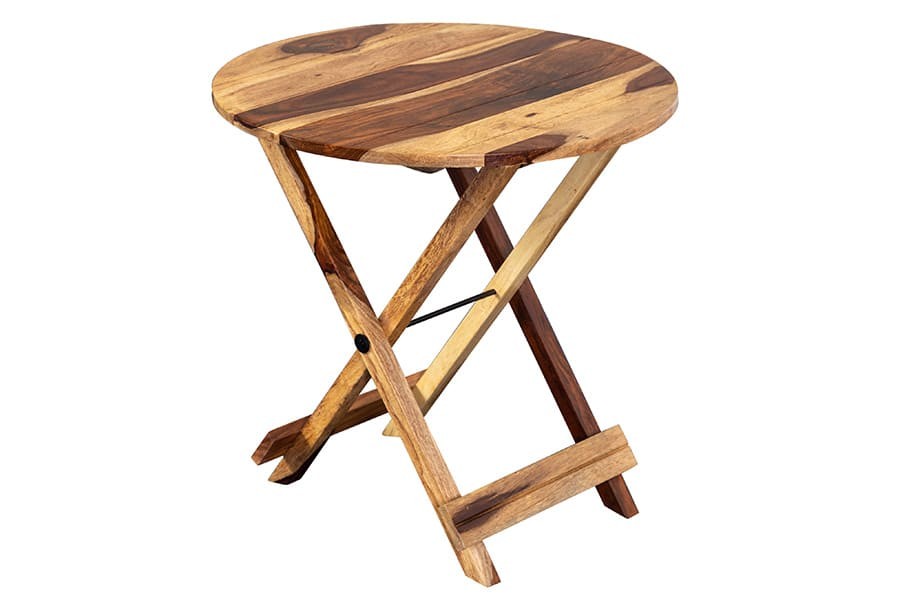 Made from solid Sheesham wood, this collapsible round accent table is great for impromptu entertaining. Easy to use and easy to store. Made with elegant Sheesham planks and handmade by artisans.