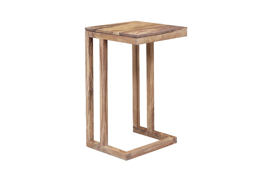 The Urban C Table features a natural matte wood finish and elegant architectural double legs. Handmade from solid sheesham wood, this chic accent piece is a perfect spot for your coffee or laptop.
