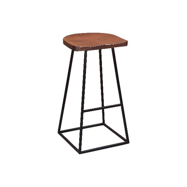 The Clement bar stool features clean lines and is topped with a scooped solid wood seat made from mango wood with a rich walnut stain.