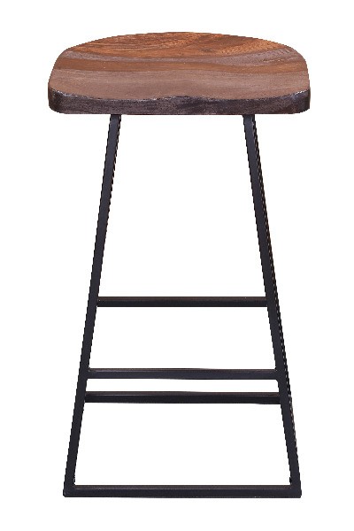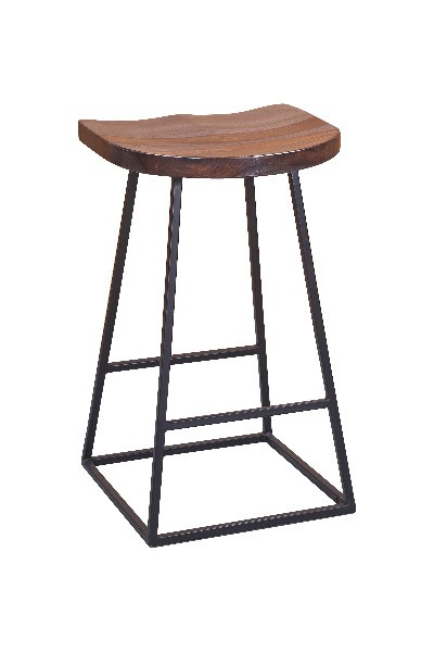The Clement bar stool features clean lines and is topped with a scooped solid wood seat made from Sheesham wood with a midnight stain.