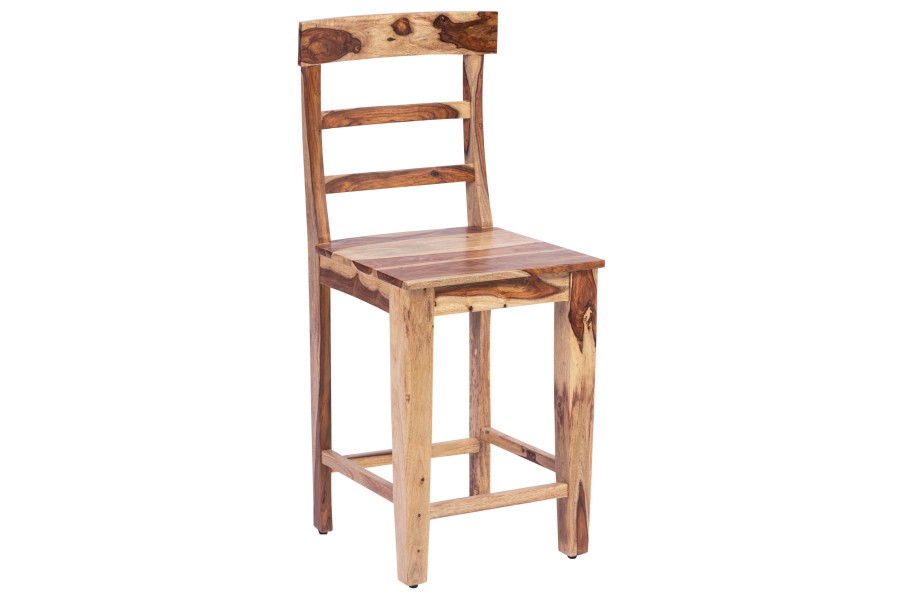 A beautiful 24" Tahoe curved back counter height chair with a slat back made from solid wood. Handmade in India by artisans this one-of-kind piece showcases the beautiful natural wood grain of Sheesham wood.