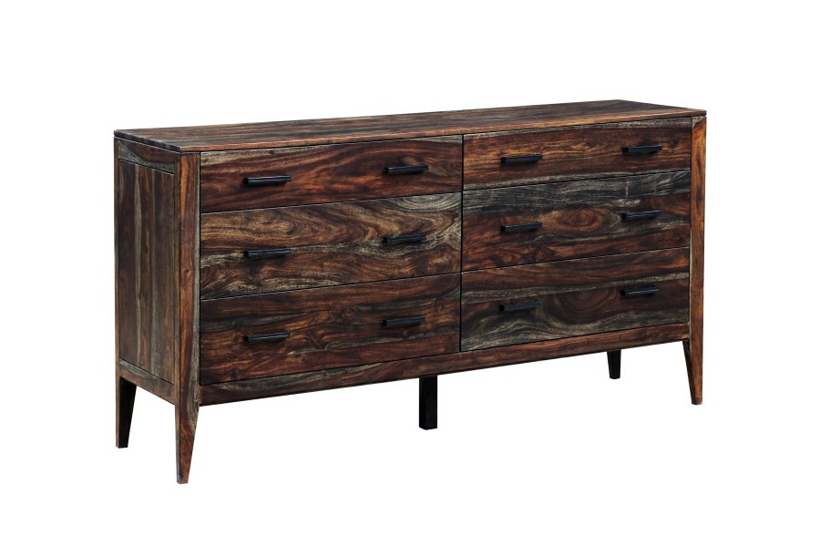 The Fall River Bedroom Collection features a dark walnut finish, elegant clean lines, and delicate tapered legs. Handmade from solid Sheesham wood, this contemporary-chic collection is a perfect fit for today's modern home. Each piece of furniture from India is unique. They are handcrafted and may have slight imperfections and variations in wood grain, paint, or finish application. This furniture is truly one-of-a-kind!