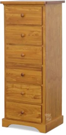 Solid pine chest of drawers made in British Columbia. Part of the Polo collection with bed, nightstand, dresser, and chest options. Available unfinished, factory-finished, or custom-finished. Shown and priced factory-finished (in 'Cinnamon').