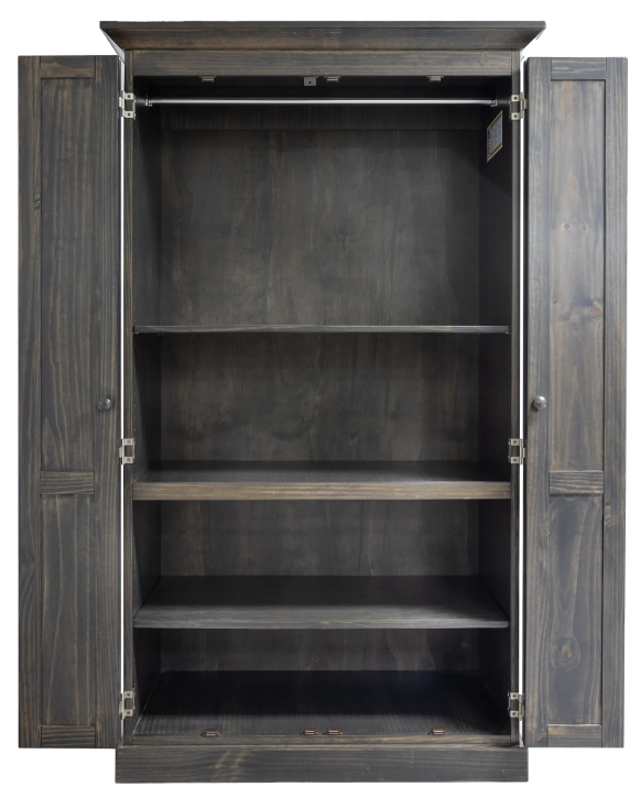 Pine Armoire with Bifold doors, 2 Adj. shelves, 1 Fixed shelf, and 1 rod, in Mako's Polo collection