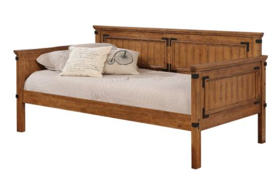 Immerse yourself in the warmth and timeless appeal of classic mission style with this rustic honey-finished daybed. Constructed from solid rubberwood, this daybed exudes durability and charm, enhanced by subtle metal trim accents that introduce a touch of industrial flair. Complete with a 14-piece slat kit for effortless mattress support. The versatile design transitions effortlessly from a cozy seating area to a comfortable sleeping space, making it an adaptable addition to any home.