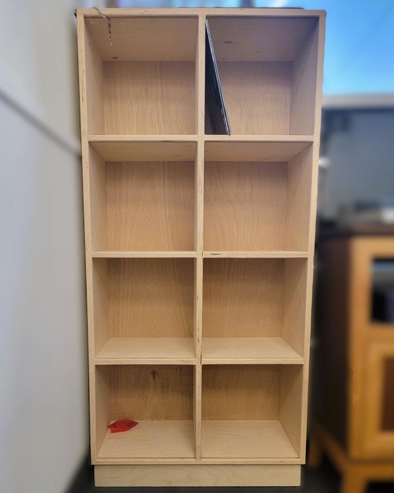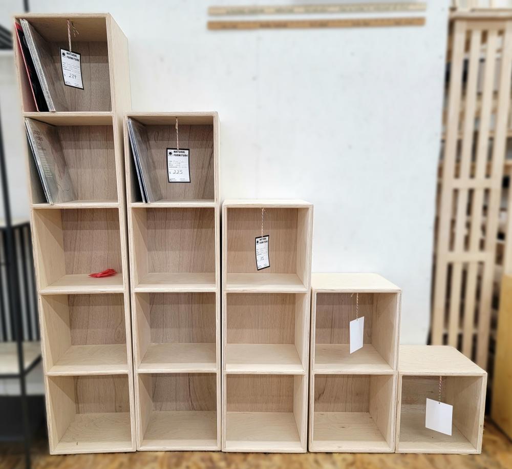 The modular vinyl record storage we're famous for! Built locally out of birch or maple plywood, or you can order a custom set in the wood of your choice. Pedestal and face trim options are also available. The price listed is for a single cube, which holds approximately 70 records...or anything else your heart desires. (We're told they make great Lego display shelves, too.)