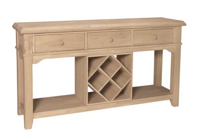Features: 3 drawers and a wine rack. Available built or ready to assemble. Contact store for details.