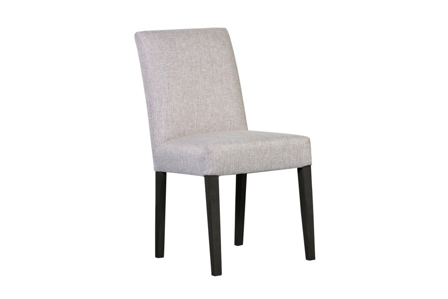 The stylish Enna dining chair is a contemporary take on the classic Parsons-style chair. With a tight cushioned seat covered in a sophisticated poly-linen blend fabric, it pairs elegantly with slim black solid wood legs. It is designed with a comfortable cushioned seat and back and is perfect for almost any style dining room table. Therefore, the Enna will arrive fully assembled with more stable legs and seating construction.
