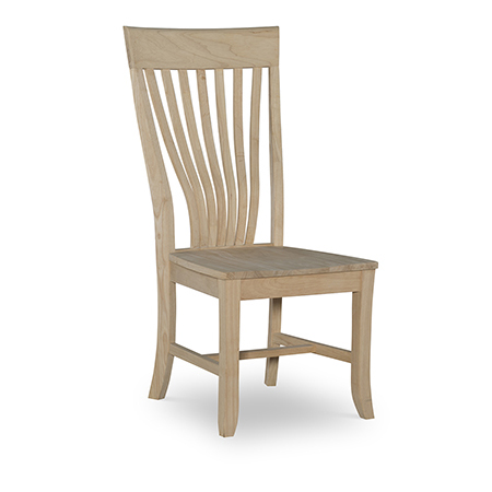 Available unfinished, custom finished, or factory finished in a variety of colorways. Choose wood seat or upholstered seat in 24 fabric options. Price listed is for unfinished. Contact store for details.