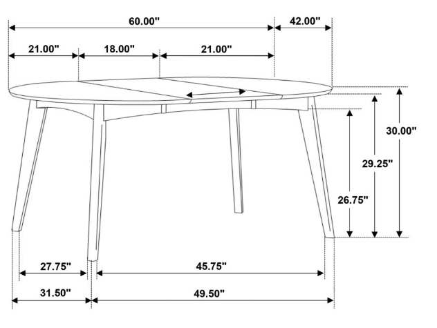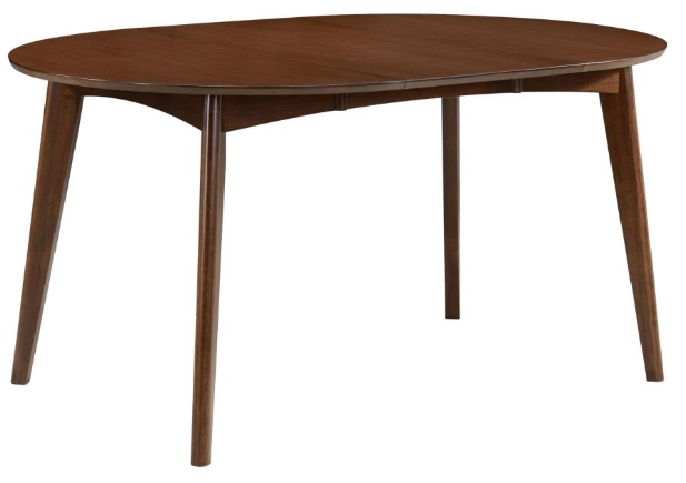 Solid wood construction and angled legs allow for durability against daily use. Removable 18" leaf extends for an oval shape. Finished in 'Dark Walnut'