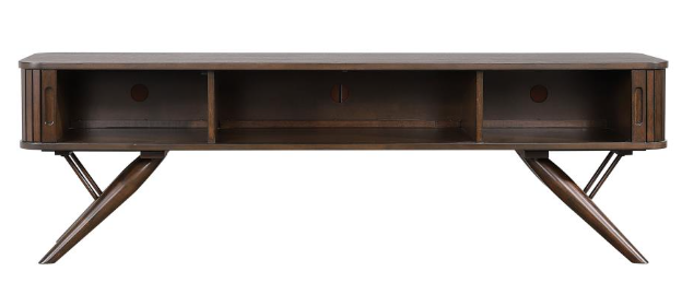 As the centerpiece of any sophisticated living room, this 71" TV stand, with its mid-century modern design, brings a touch of elegance and timeless charm. Its sleek silhouette is perfectly complemented by the rich walnut finish, offering a warm, inviting glow to your space. The cleverly designed sliding doors glide smoothly to reveal or conceal your entertainment gadgets, crafting an immaculate facade that speaks to the minimalist's soul. Designed to accommodate televisions up to 80 inches, this piece isn't just furniture—it's a statement.