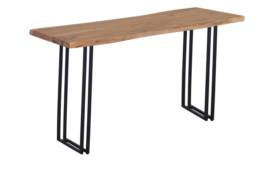 Made from sustainably sourced acacia wood, the variation in grain, color, and texture makes each piece one of a kind. Architectural metal bases can be mixed and matched for personal customization. Handcrafted by artisans to create a live edge finish, this beautiful solid wood collection features heirloom quality furniture built to last a lifetime. A clear light gloss finish over solid acacia wood highlights the natural beauty of the wood grain.
